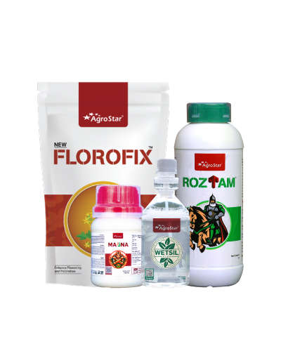 Florofix - 250g per Acre, Wetsil Plus - 50 ml per Acre, Roztam - 250 ml per Acre, Magna - 100 ml per Acre,